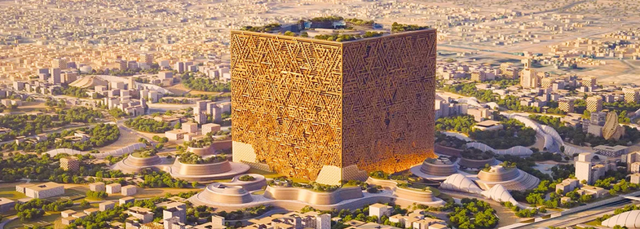 이 거대한 무카브는 높이 400m, 바닥 면적이 18만 제곱미터에 달하는 초대형 정육면체 건물로, 엠파이어 스테이트 빌딩을 20배 합친 규모입니다. 리야드 중심에 자리 잡고 있는 이 건물은 도심 속에서 거대 도시 같은 느낌을 줄 것입니다.