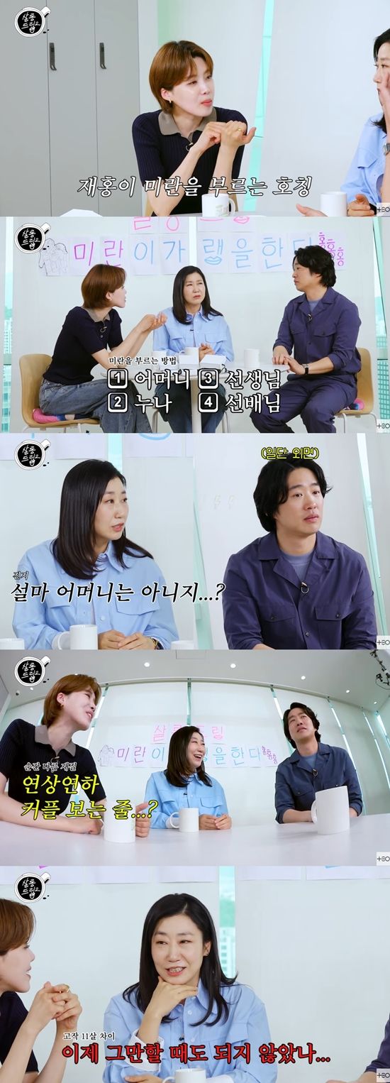 장도연이 "두 분은 호칭을 안재홍 씨가 라미란 씨를 부를 때, 어머니라고 했다가 누나라고 했다가 (한다)"라고 질문했다. 라미란도 안재홍에게 "궁금한 게 있는데 뭐라고 나 저장되어 있냐. 어머니라고 저장되어 있는 건 아니지"라고 말해 웃음을 자아냈다. 장도연은 두 사람의 모습이 "연상연하 커플 보는 것 같다"고 말했다.