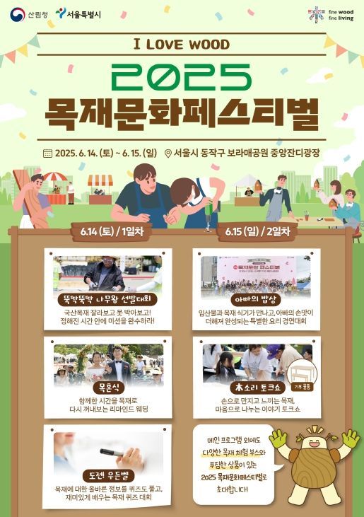 [와이뉴스] 산림청은 서울특별시 동작구 보라매공원에서 오는 14일과 15일 이틀간 ‘2025 목재문화 페스티벌’을 개최한다고 밝혔다.