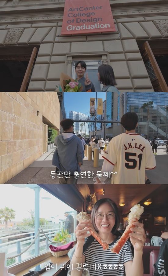 10일 오연수 유튜브 채널에는 '큰아들 졸업식 아들 등판 ( 허락받음 ) / 미국 야구장 (바람의 손자 응원)'이라는 제목의 영상이 업로드됐다.