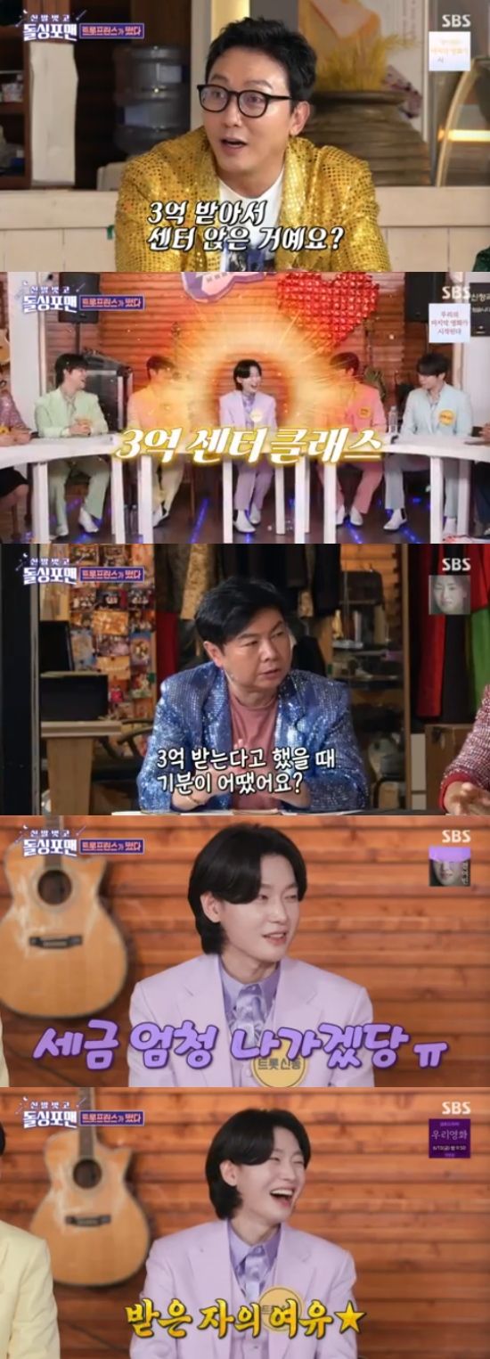 이날 김용빈의 등장에 '미스터트롯3' 眞(진) 상금을 언급했고, 김용빈은 "상금이 3억 원이었다. 상금을 받는 순간 '세금 엄청 나가겠다'는 생각이 제일 먼저 들었다"고 솔직한 입담을 보였다.