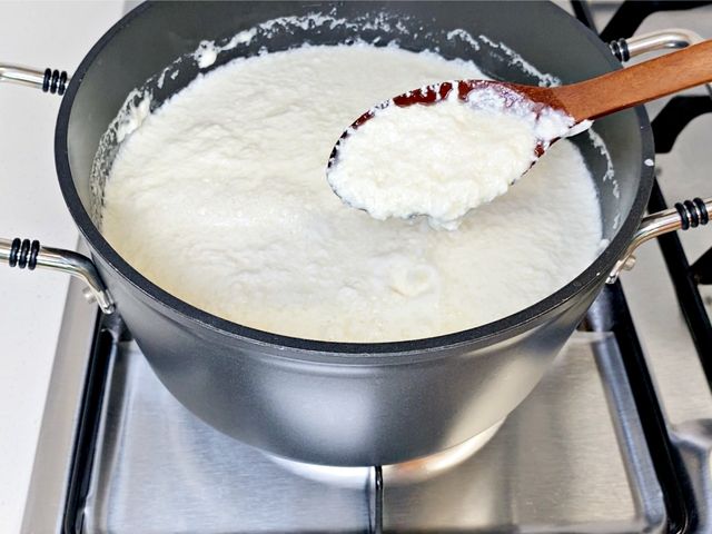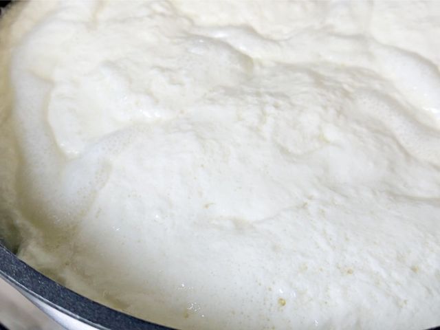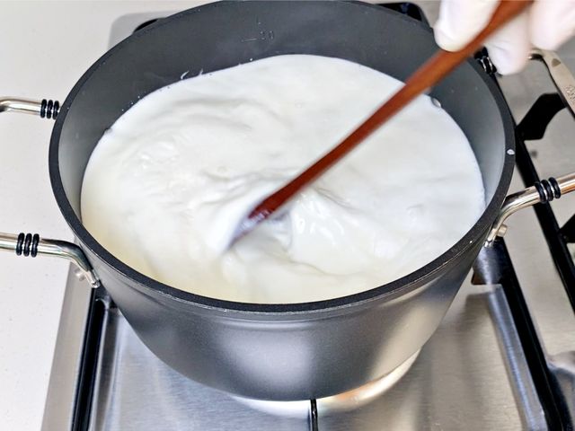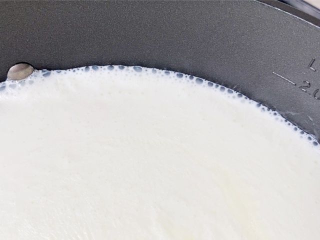 우유가 서서히 데워지면서 표면에 막이 생기고