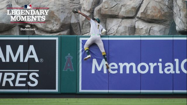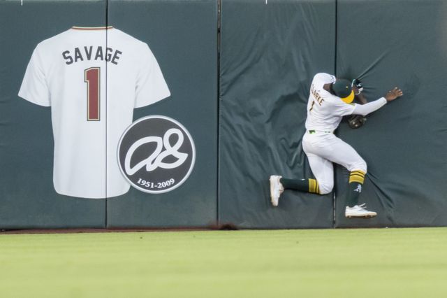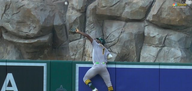 애슬레틱스 외야수 덴젤 클라크(25)가 엄청난 호수비를 선보였다. 사실상 홈런 타구를 펜스를 밟고 올라가 글러브에 담았다.