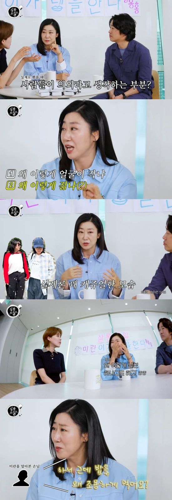 이에 라미란은 '왜 이렇게 얼굴이 작냐', '왜 이렇게 젊냐'라는 반응이 있다고 밝히면서 "어머님들이 보기엔 동년배인 줄 알았는데 실제로는 애들처럼 입고 다닌다. 그러면 '왜 이렇게 아기 같으세요?' 이런 얘기를 많이 듣는다"고 일화를 전했다.