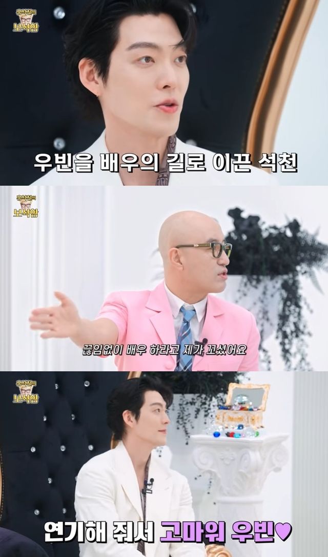 홍석천은 "(일부러) 우빈이 근처로 갔다. (가까이서 보니) 비주얼이 너무 좋은 거다. 그리고 그때가 마침 배우 중에 공룡상 배우들이 막 각광받기 시작할 때라 딱 최고였다"며 "티라노사우루스를 발견한 듯한 눈빛으로, '저 친구 대박 나겠다' 싶어서 끊임없이 배우 하라고 꼬셨다. 그 말을 듣고 배우를 해서 '대세 배우' 김우빈이 된 것"이라고 남다른 선견지명을 자랑했다.
