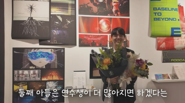 오연수는 “아들이 졸업식 전에 졸업전시를 해서 가고 있다. 중간에 군대를 다녀와서 이제야 졸업을 한다”고 설명했다.