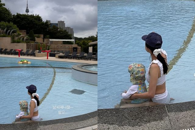 공개된 사진 속 손연재는 남산 타워가 보이는 한 호텔 야외 수영장에서 아들과 물놀이를 즐기고 있다. 사랑스러운 화이트 투피스 모노키니를 입은 손연재는 군살 하나 없는 슬림핏 몸매로 보는 이를 매료했다. 구름이 잔뜩 낀 날씨 탓에 풀이 죽은 듯한 손연재와 아들의 뒷모습 투샷도 눈길을 끈다.