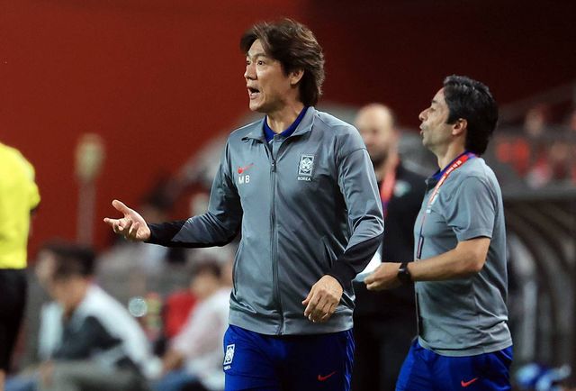지난 10일 오후 서울 마포구 상암동 서울월드컵경기장에서 열린 2026 국제축구연맹(FIFA) 북중미 월드컵 아시아 3차 예선 B조 10차전 대한민국과 쿠웨이트의 경기, 대한민국 홍명보 감독이 선수들에게 작전을 지시하고 있다 / 뉴스1