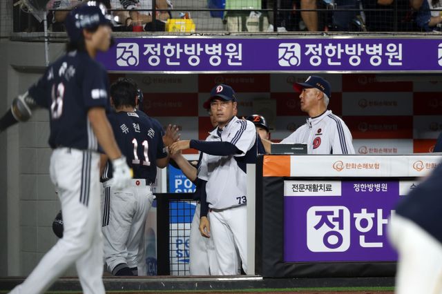 두산은 지난 8일 롯데 자이언츠전 때도 수비가 경기 흐름을 뺏어갔다. 당시 두산은 7회 초 1-2 상황에서 투수 박치국이 롯데 선두 타자 김동혁에게 약한 2루수 앞 땅볼을 유도했다. 손쉽게 처리할 수 있는 타구였으나 여동건이 마지막 바운드를 수기다리다가 공을 옆으로 빠뜨렸다. 롯데는 덕분에 생긴 기회를 살려 추가점을 내고 승기를 가져갔다.