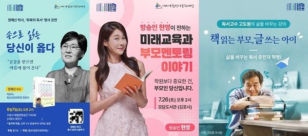 세 번째 강연은 7월 26일 오후 2시 김포시 모담도서관에서 방송인 현영이 강연자로 나선다. ‘지금 이 순간을 살아라’를 바탕으로 부모와 자녀 간의 소통, 자녀의 꿈을 발견하는 방법 등 교육적 메시지를 중심으로 강연이 진행된다.