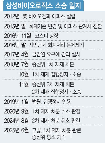 증선위는 지난 2018년 7월과 11월 삼성바이오가 자회사였던 삼성바이오에피스를 관계회사로 처리하면서 관련 공시의무를 위반했다며 두 차례 제재 처분을 내렸었다. 삼성바이오로직스는 지난 2012년 미국 바이오젠과 함께 신약개발회사 삼성바이오에피스를 설립했는데, 2015년 돌연 삼성바이오에피스를 자회사에서 관계회사로 전환했다.