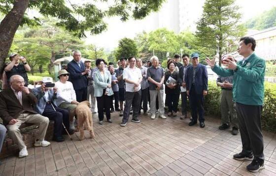 지재운 현대홈타운 입주자대표는 ”용인시와 주민들을 위해 정말 많은 일을 해주고 계신 시장님의 방문에 감사의 뜻을 전한다“며 ”시장님이 아파트 주민들의 불편함을 세심하게 살펴준 덕분에 지난 5월에는 아파트 인근의 법화산 숲길이 빠르게 조성돼 주민들이 잘 이용하고 있다“고 말했다.