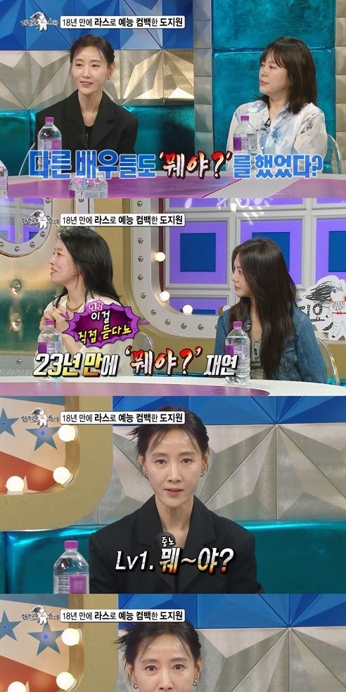 극 중 여러 버전의 ‘뭬야?’가 있었지만, 도지원의 ‘뭬야?’만이 끝까지 생존하게 된 것. 이어 도지원은 MC들의 요청에 ‘여인천하’ 이후 23년 만에 분노 단계별 ‘뭬야?’를 재연한다.