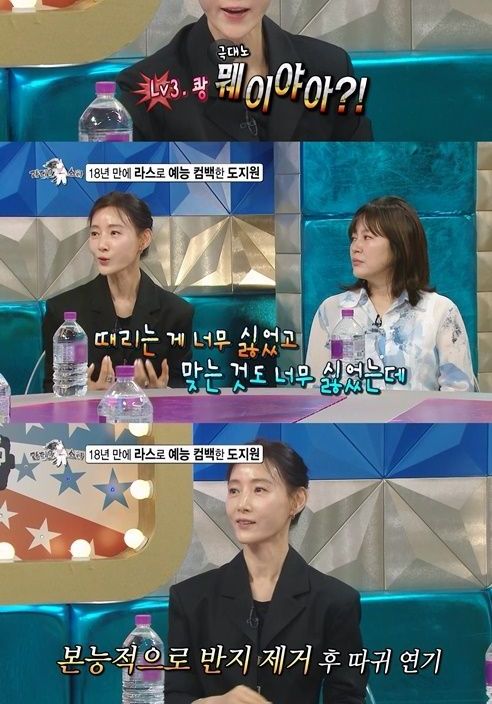 그런가 하면 도지원은 ‘뭬야?’를 재연하며 본능적으로 손에 끼고 있던 반지를 뺀 자신의 모습을 깨닫고, ‘여인천하’ 속 유난히 많았던 따귀 장면을 떠올린다. 극 중 연기 선배님들의 따귀를 때리는 장면이 많았던 도지원은 “때리는 게 너무 싫었고, 맞는 것도 너무 싫었다”라고 당시의 고충을 털어놓는다.