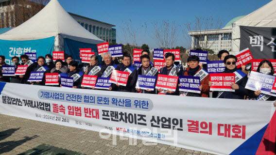 때문에 업계에서도 사실상 가맹사업법 개정안 통과를 막는 건 포기한 분위기다. 대신 가맹사업법 개정안의 핵심인 단체교섭권의 기한적 범위를 줄이는데 집중하는 모양새다. 과거엔 단체협상에 나서는 가맹점주단체를 일부로 제한해달라는 의견이었지만, 최근엔 협상의 시한이라도 1년에 1~2번 등으로 정해달라는 요청에 집중하고 있는 것으로 전해졌다.