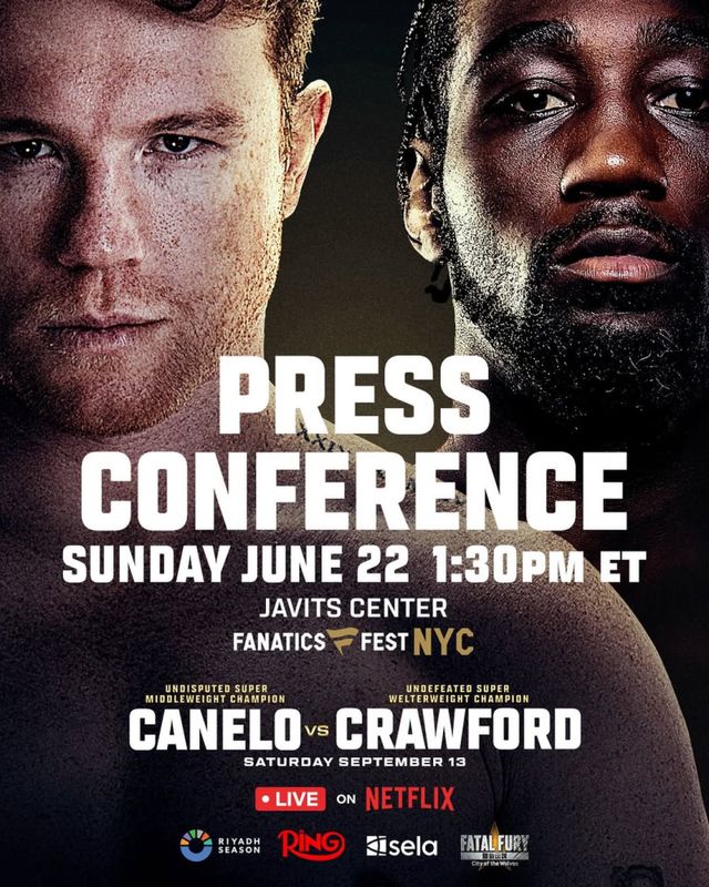 이 초대형 경기를 앞두고 카넬로와 크로포드는 세 도시에서 국제 기자회견 단상에 오른다. 오는 6월 20일 사우디아라비아 리야드에서 시작해, 22일에는 미국 뉴욕의 파나틱스 페스트에 들르고, 27일 라스베이거스에서 마지막 기자회견을 갖는다.