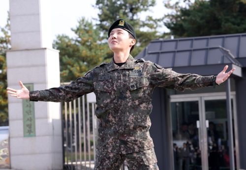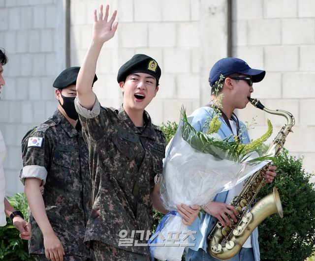 같은 부대에서 복무한 지민과 정국은 한 차를 타고 오전 8시께 현장에 도착했다. 차에서 내려 포옹한 두 사람은 서로를 바라보며 쑥스러운 미소를 보이면서도 전역의 기쁨을 감추지 못했다.