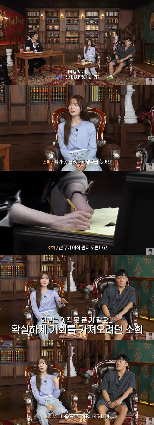이에 윤소희는 "제가 못 풀었다고 생각했다. 그리고 현규가 답이 뭔지 모른다고 생각했다. 앞에서 계속 계산을 하고 있더라"고 솔직히 고백했다.