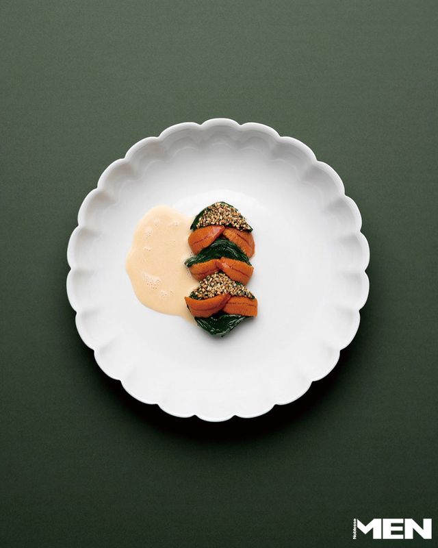 트루아그로 부자는 2017년 새로운 곳에 둥지를 틀면서 또 한 번 변화를 꾀했다. 프랑스 시골 마을 로안에서 약 8km 떨어진 우슈로 이전하면서 상호를 ‘르 부아 상푀유(Le Bois sansFeuilles)’로 변경했다. 이 새로운 이름은 ‘잎이 없는 숲’을 의미하는데, 레스토랑의 철학을 엿볼 수 있는 지점이다. 19세기 농가를 개조한 건물은 미셸의 오랜 친구이자 건축가인 패트릭 부솅이 설계했다. 수령 100년 된 참나무를 중심으로 식사 공간을 배치했고, 다이닝 공간 벽면을 유리로 마감해 계절의 변화가 병풍처럼 펼쳐진다. 그리고 레스토랑 주변 대지에 과수원, 벌통, 농장, 목초지를 함께 운영하고 있다. 자연과의 공존, 레스토랑이 끊임없이 진화를 거듭하면서도 고집하는 부분이다. 그 신념은 요리에서 더 선명하게 드러난다. 단순함, 맛의 순도, 그리고 적당한 산미는 여전히 트루아그로 요리의 축이다. 그 스타일을 가장 잘 보여주는 요리가 바로 사몽 아 로젤(수영초 연어)이다. 1962년 여름, 장 바티스트 트루아그로의 아들 피에르가 정원에 넘쳐나는 수영초를 보고 개발한 요리다. 얇게 저민 연어 필레, 샬럿·화이트 와인·베르무트·버터를 졸여 만든 소스, 그리고 수영초. 이 단순한 조합은 프랑스 미식의 흐름을 바꿔놓았다. 당시 프렌치 요리는 녹진한 소스와 장시간 조리가 주를 이루었는데, 피에르가 선보인 간결하고 산뜻한 연어 요리는 가히 혁신이었다. 1968년 <고 앤 미요> 가이드는 트루아그로를 ‘세계 최고 레스토랑’으로 평가했고, 같은 해 앙리 고와 크리스티앙 미요는 사몽 아 로젤 스타일을 가리키는 용어로 ‘누벨 퀴진’이라는 말을 처음 사용했다. 본질에 집중한 누벨 퀴진은 50여 년이 지난 지금도 여전히 유효한 스타일로, 많은 요리사의 지침서가 되어주고 있다.