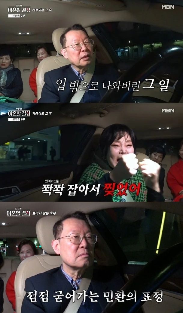 과거 고민환의 외도를 두 번이나 목격했던 이혜정은 "가끔 죽이고 싶었다"고 울분을 토하는가 하면 "(가상 이혼을 겪으면서) 화해하긴 했지만 아직 다 용서되지는 않았다"고 솔직하게 밝혔고, 남편은 계속해서 과거를 언급하는 것을 불편해하며 갈등이 이어졌다.
