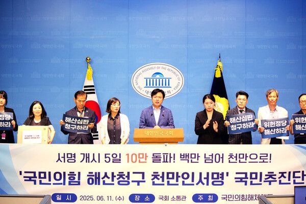 이어 "집권당 국민의힘에서는 공공연하게 헌법재판관을 압박하고 헌법 기관에 대한 파괴 선전 선동을 이어갔다"며 "(이에) 내란, 위헌 정당 국민의힘에 대한 위헌 정당해산심판청구를 촉구하는 1000만인 서명운동에 돌입했다"고 주장했다.