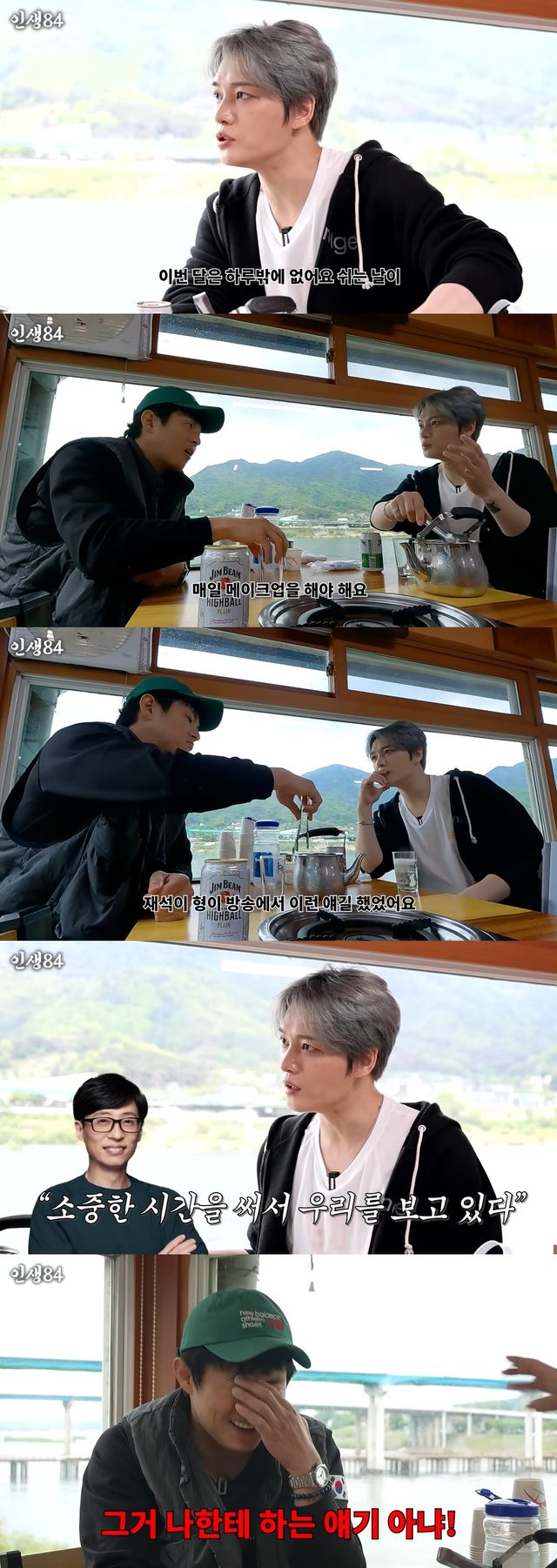 이에 김재중은 "재석이 형이 방송에서 한번 이런 얘기를 했다. '시청자분들이 소중한 시간을 써서 우리를 보고 있는데 성의 없게 나가면 시청자분들에 대한 예의에 어긋나는 게 아닐까'"라고 말했다.