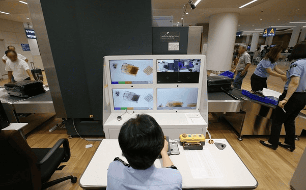 비행기 착륙 후, 수화물은 엑스레이 검사를 받습니다. 의심 물품이 발견되면 수화물에 노란 씰이 붙습니다. 이 수화물은 추가 검사를 받게 되죠.