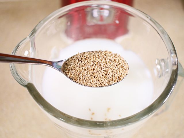 통깨를 듬뿍 5큰술 넣어 꼬소한 맛을 더해줘요.