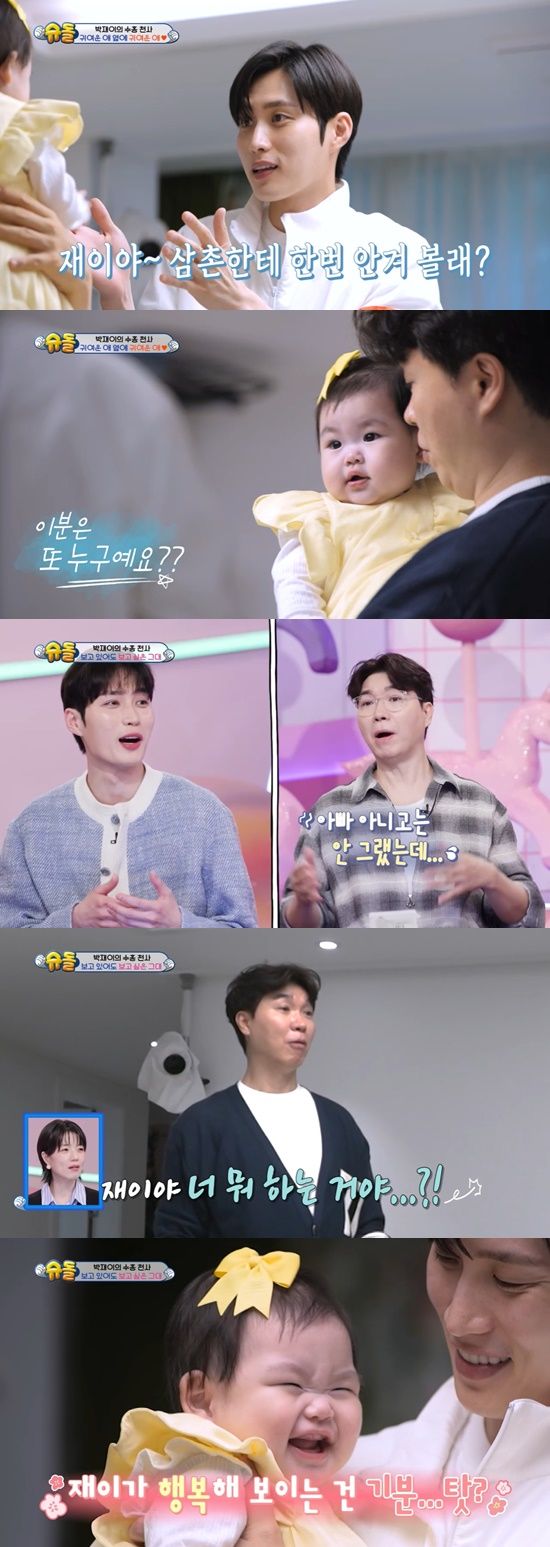 하지만 재이가 마음의 문을 연 상대는 김준호였다. 김준호는 "재이가 내심 제게 안 안기길 바란 것 같더라"고 박수홍의 당시 반응을 전했고, 박수홍은 "아빠 말고는 다른 사람에게 팔을 뻗는 경우가 별로 없는데"라고 서운해했다.