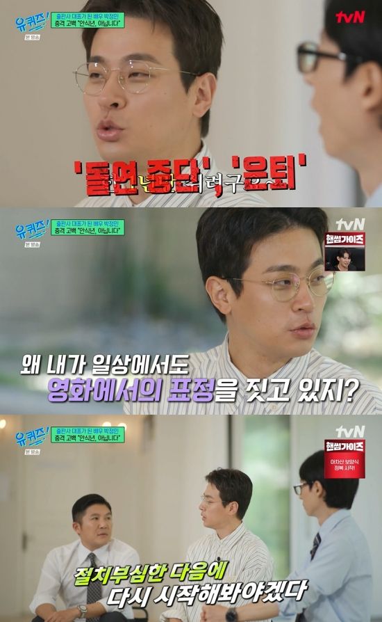 이날 박정민은 배우가 아닌 출판사 무제 대표로서 인사했고, 유재석은 "정민 씨가 연기 활동 중단, 안식년을 선언했다"라며 궁금해했다.