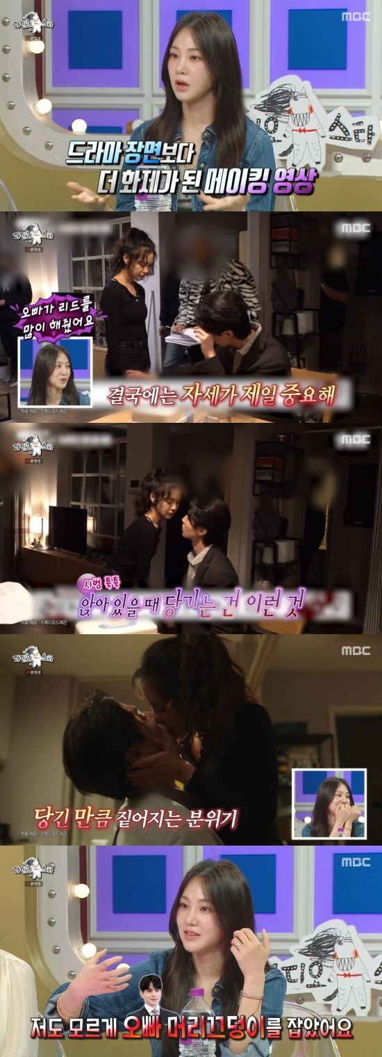 영상을 본 한지은은 "키스신의 느낌이 좋다고 감독님께서 장면을 오래 담으셨다"면서 "키스신을 찍으면서 저도 모르게 오빠 머리끄덩이를 잡기도 했었다"고 몰입했던 현장 분위기를 전했다.