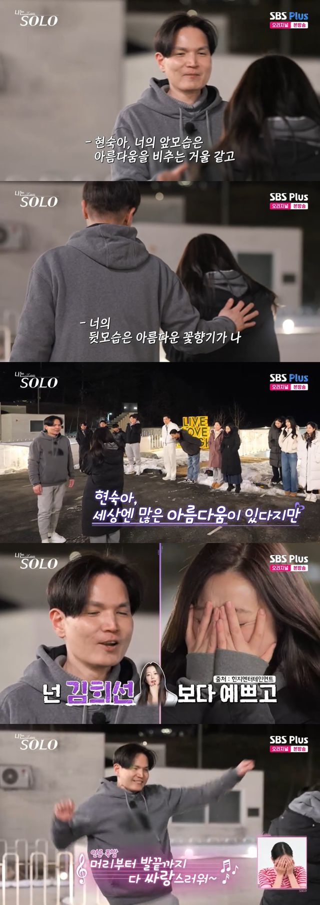 이어 광수는 "현숙아 머리부터 발끝까지 다 사랑스러워~"라며 노래를 열창했고, 이를 본 송해나는 "정말 못 볼 꼴이다"라며 질색했다.