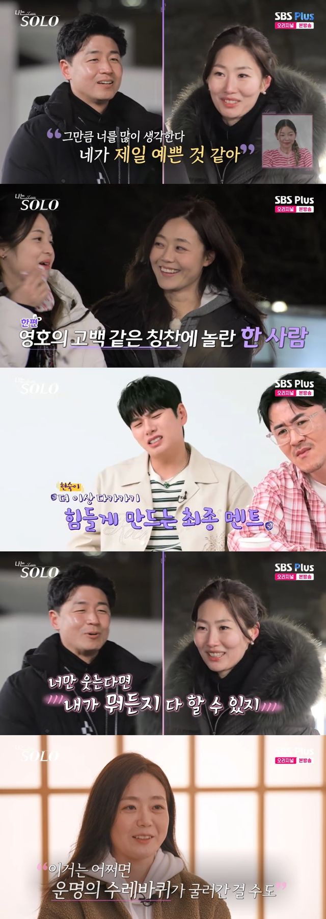 송해나는 "나 같으면 영호씨랑 연이 아닌가 보다 하고 놔줄 것 같다"라고 말했고, 데프콘은 "순자 씨랑 잘되면 좋은데 저희가 보고 싶은 드라마의 장면들, 쟤네들은 왜 자꾸 엇갈리면서 안될까가 보고 싶은 거다"라고 말했다.