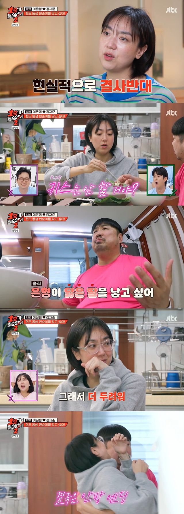 또 이은형이 마늘 먹으려 하자, 강재준은 "마늘을 왜 먹어. 키스는 안 할 거야?"라고 말했다. 강재준은 "은형이 닮은 딸을 생각해 봤는데 미치겠다. 쌍꺼풀 딱 있고. '아빠~' 이러는데 나는 진짜"라며 또 한 번 둘째를 언급했다.