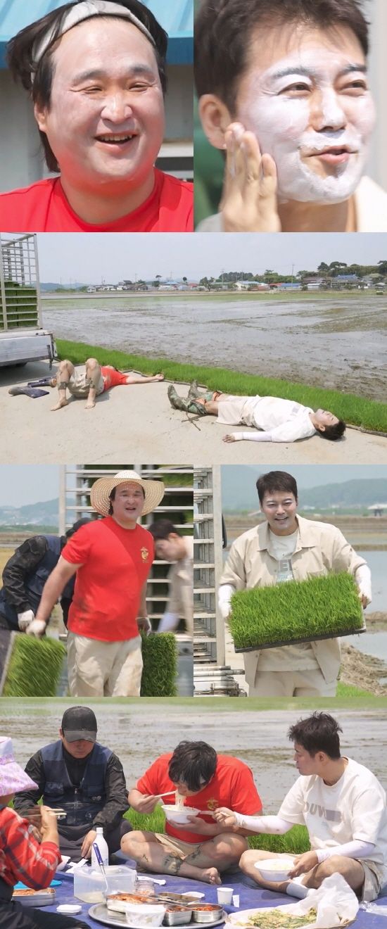 전현무와 구성환은 비닐하우스 안을 빼곡하게 채운 모판을 발견하고 당황한다. 두 사람의 임무는 땡볕 아래 뜨거워진 비닐하우스 안의 모판을 차에 싣고, 논으로 이동해 다시 모판을 내리는 작업이다. 전현무와 구성환은 무려 ‘2,900평’의 논에 심을 모판을 옮기며 땀을 뻘뻘 흘리고, 끊임없이 곡소리를 터트린다.