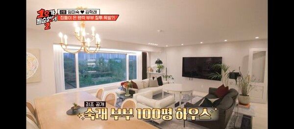 뉴시스 보도에 따르면, 11일 방송된 JTBC 부부 예능물 '1호가 될 순 없어2'에선 330㎡(약 100평)가량의 임미숙·김학래 부부의 집이 공개됐다. 집에서 L타워가 보이는 고급 아파트였다.