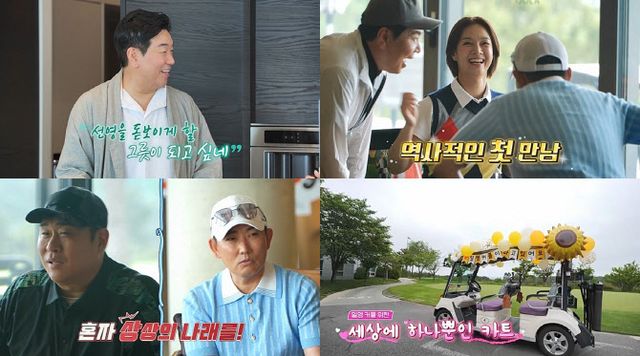 문세윤은 손수 장식한 ‘웨딩카’ 느낌의 카트를 선보였고, 이에 박선영은 “기억에 오래 남을 것 같다”며 인증샷을 찍었다. 반면 김일우는 “6년 만에 골프를 치게 됐다”며 긴장감을 드러냈는데, 박선영은 전담 코치처럼 그를 밀착 케어했을 뿐 아니라 “폼이 섹시하다”며 무한 칭찬했다.