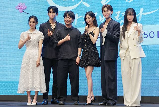 배우 권한솔(왼쪽부터), 옥택연, 이웅희 PD, 배우 서현, 서범준, 지혜원이 지난 11일 오후 서울 구로구 신도림동 더 세인트 그랜드볼룸에서 열린 KBS 2TV 새 수목드라마 '남주의 첫날밤을 가져버렸다' 제작발표회에 참석해 포즈를 취하고 있다. ‘남주의 첫날밤을 가져가버렸다’는 평범한 여대생의 영혼이 깃든 로맨스 소설 속 병풍 단역이 소설 최강 집착남주와 하룻밤을 보내며 펼쳐지는 로맨스 판타지극이다 / 뉴스1