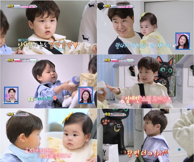 정우는 은우의 스윗함과는 또 다른 매력의 오빠로 존재감을 드러냈다. 공룡만 신경 쓰던 정우가 벌떡 일어나더니 재이의 젖병을 덥석 집어 우유를 먹여준 것. 동생 재이를 챙기기 시작한 정우의 모습이 눈길을 끌었다.