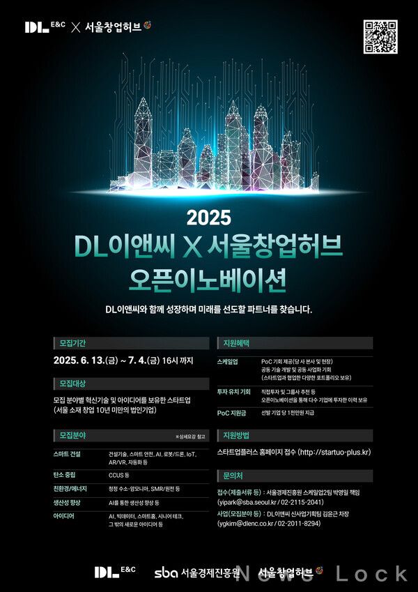 [뉴스락] DL이앤씨가 서울시 산하 중소기업 지원기관인 서울경제진흥원과 함께 오픈 이노베이션 공모전을 개최한다고 12일 밝혔다.