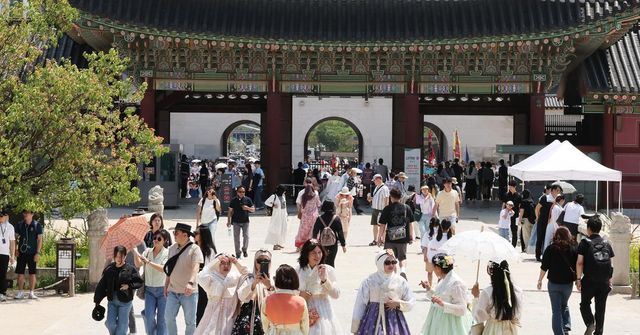 서울 종로구 경복궁을 찾은 관람객들 모습. / 뉴스1