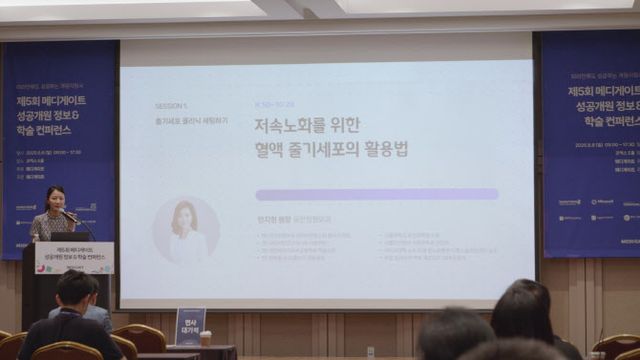 줄기세포 클리닉 세팅하기 세션에서 안지현 원장은 ‘저속노화를 위한 혈액 줄기세포의 활용법’을 주제로 미라셀의 줄기세포추출시스템 스마트엠셀(SMART M-CELL)을 사용, 1년간 지속적으로 혈액줄기세포를 맞은 임상 케이스의 텔로미어 변화와 호르몬 변화 고찰에 대해 강연을 펼쳤다.