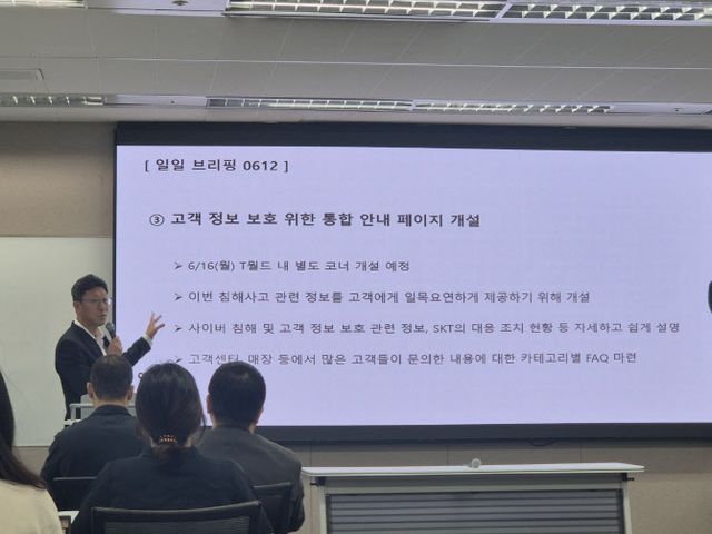 SK텔레콤은 티월드 홈페이지에 고객 정보보호를 위한 통합 안내 코너를 오는 16일부터 개설한다. 김 센터장은 “이번 사고와 관련해 종합 정보를 안내하는 페이지를 T월드에 별도 개설할 예정”이라며 “지금도 T월드 공지, 뉴스룸 사이트, SNS 채널 등을 통해 여러 내용을 안내하고 있지만 조치 현황과 대응 정보, Q&A 등을 좀 더 보기 편하게 정리해 안내하겠다”고 설명했다.