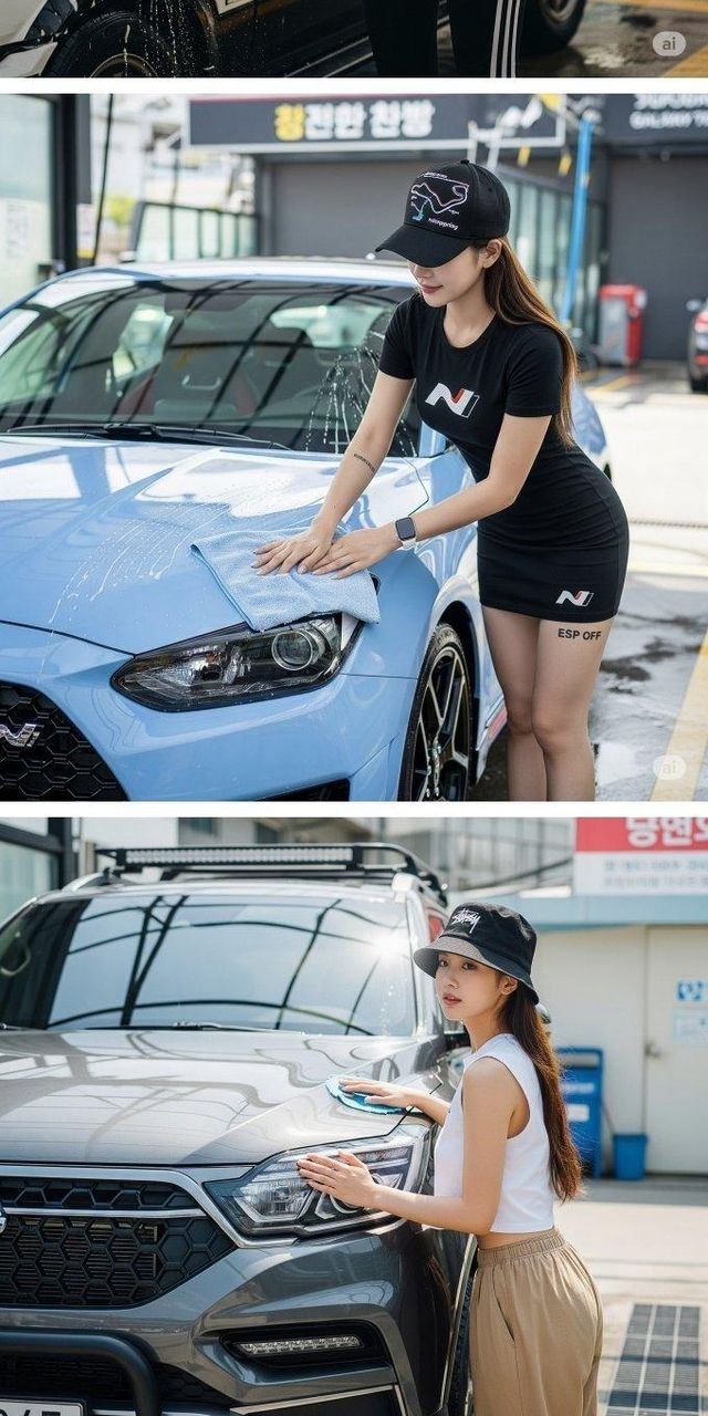 세차하는 한국 여성 그려달랬는데 거의 실사같네 ㄷㄷㄷ