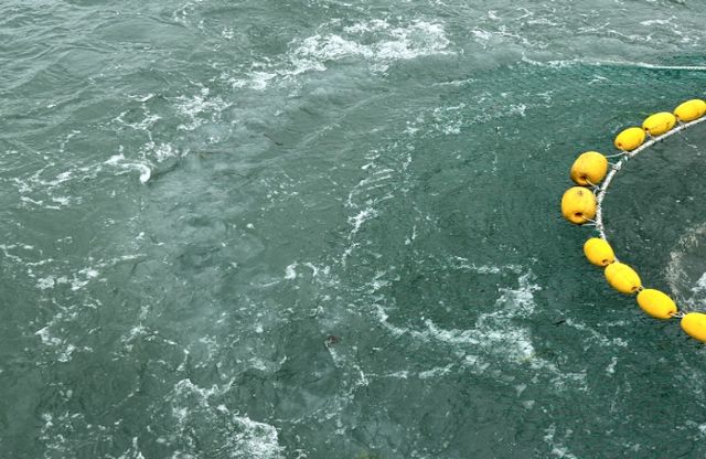 | ▲ 보름달물해파리 제거 작업(절단망이 부착된 그물로 해파리 제거/참고용 사진으로 훈련 당일 사진이 아님) |