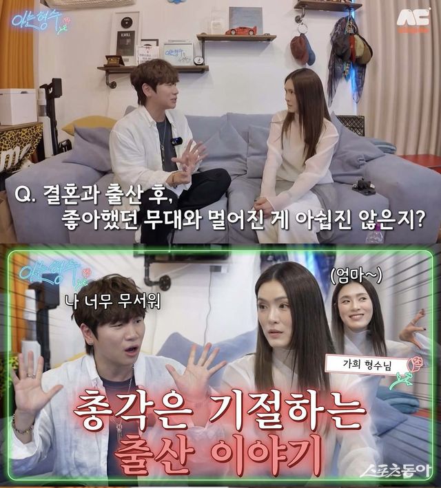 둘째 출산 당시 갑작스러운 하혈로 제왕절개를 하게 된 가희는 “그때 ‘슈퍼맨이 돌아왔다’를 촬영 중이었다. (출산 예정일도 아닌데) 오밤중에 갑자기 피가 철철 터졌다”며 긴박했던 상황에 대해 이야기했다. 가희는 얘기를 하면서도 “놀라겠다 총각이”라며 케이윌을 걱정했고, 케이윌은 “저는 외가, 친가 모두 위에 누나가 없다. 그래서 이런 게 너무 무섭다”라고 현실적인 반응을 보여 웃음을 자아냈다.