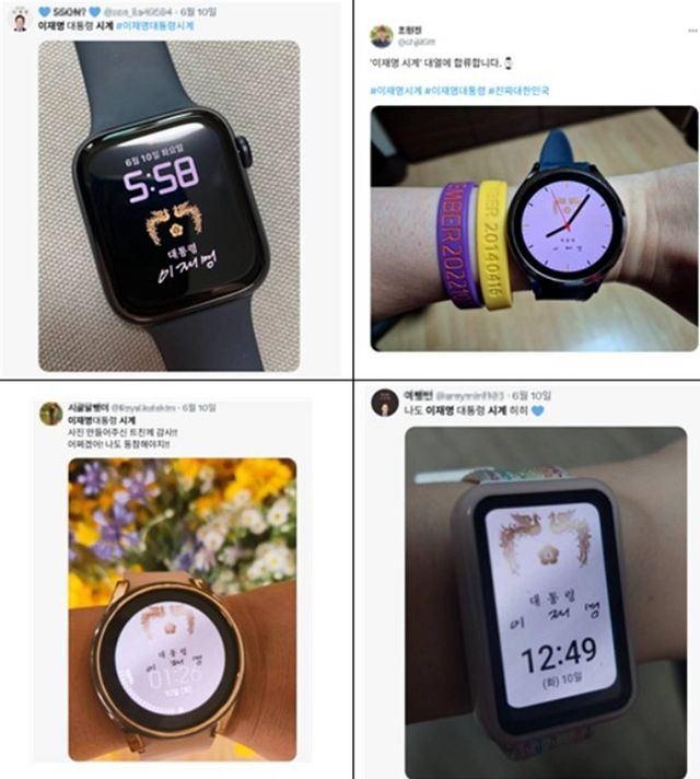 국민들이 자체적으로 제작한 이재명 대통령 스마트워치 배경 화면 / 연합뉴스, 대통령실 제공