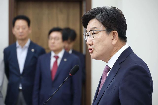 권성동 국민의힘 원내대표가 12일 오후 서울 여의도 국회에서 퇴임 기자회견을 하고 있다. 2025.6.12/뉴스1