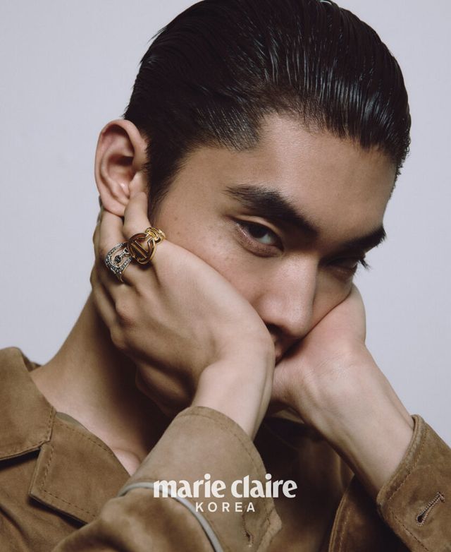 약지의 다이아몬드를 세팅한 팬텀 클리크 링, 소지의 옐로 골드 블롭 링 모두