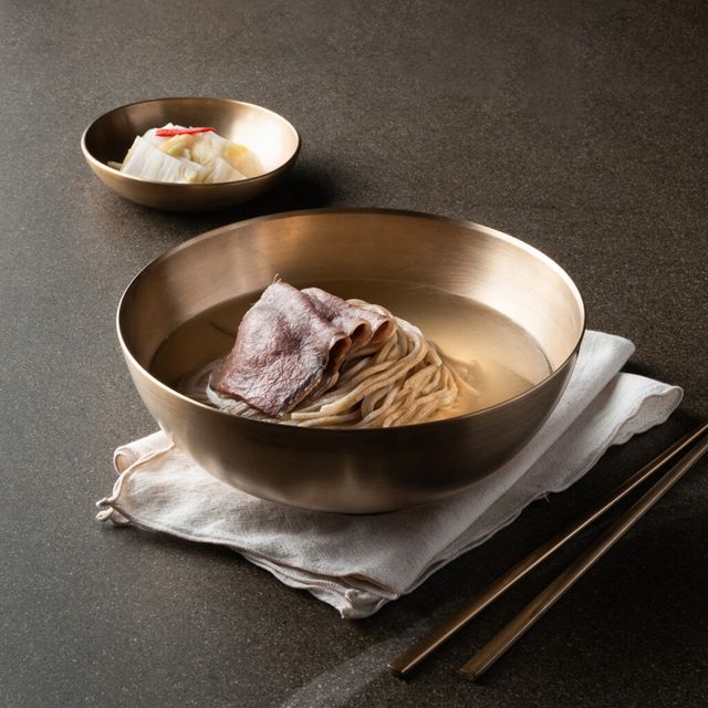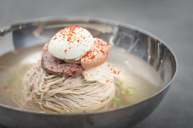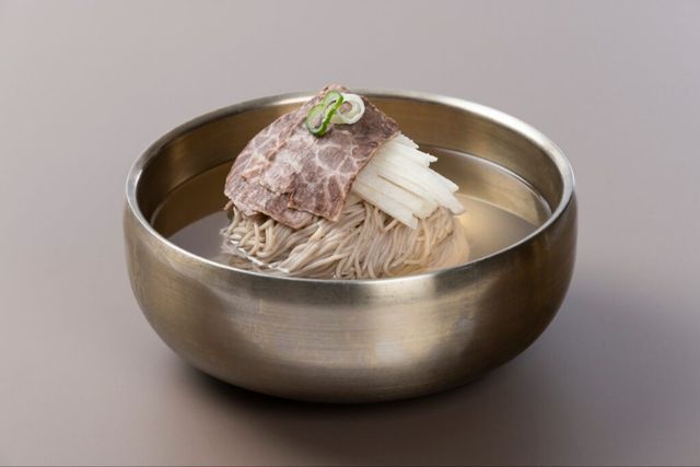 이곳의 냉면은 면 자체에 정말 많은 정성이 들어가 있어요. 정종문 셰프의 섬세한 관리하에 만들어진 100% 순메밀 면은 굉장히 부드럽고 향긋해요. 뚝뚝 끊기지 않고 입 안에서 부드럽게 풀어지는데, 고요하게 퍼지는 메밀 향이 은은하게 오래 남아요. 국물은 깔끔하면서도 묘하게 단맛이 느껴지는 스타일인데, 끝 맛이 깔끔해서 부담 없이 먹을 수 있습니다.